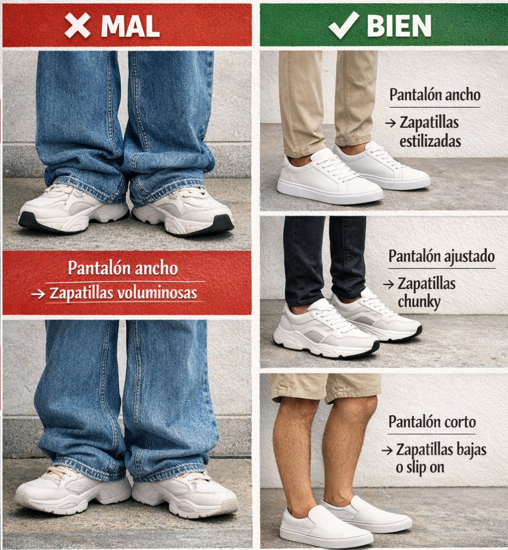 Pantalones anchos → zapatillas más estilizadas