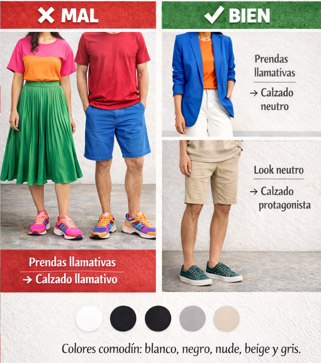 Si tu outfit es muy llamativo → calzado neutro