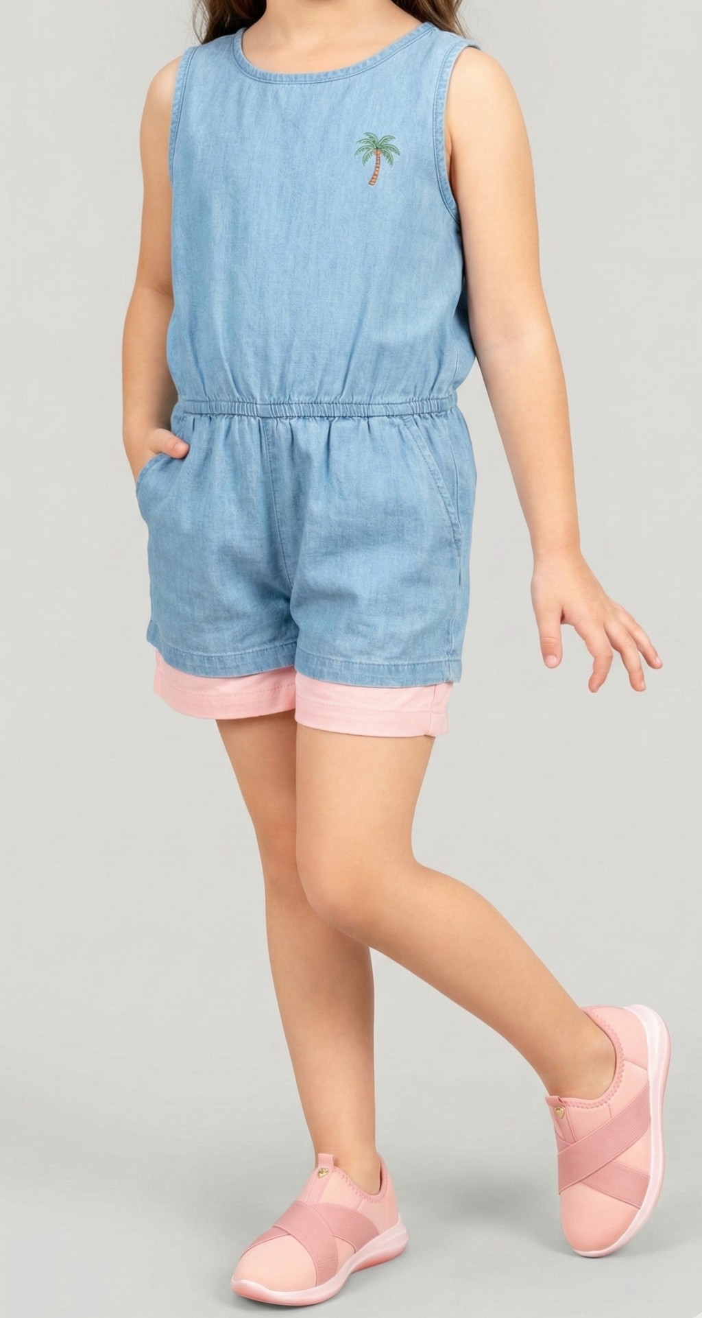 Para las mamás que buscan practicidad sin perder la ternura, este look de verano es la solución definitiva: un enterito de denim liviano que aporta frescura y resistencia para el juego, combinado magistralmente con estas zapatillas slip-on rosa pastel que son las verdaderas protagonistas. Su diseño inteligente con bandas elásticas cruzadas no solo garantiza un estilo moderno y canchero, sino que ofrece la autonomía perfecta para que tu niña se calce sola en segundos, mientras que la suela flexible y el textil suave aseguran comodidad absoluta para correr del parque al cumpleaños, convirtiéndolas en el calzado versátil y "todo terreno" que no puede faltar en su armario esta temporada.